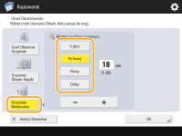 1 | Naciśnij na <Usuń Obramow. Oryginału> i ustaw <Rozm.Oryginału>. ![]() Jeżeli rozmiar wyświetlany w pozycji <Rozm.Oryginału> różni się od rozmiaru umieszczonego w urządzeniu oryginału, naciśnij przycisk <Zmień>, aby wybrać rozmiar. |