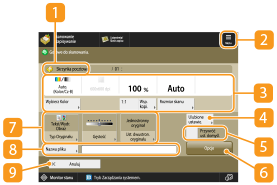 Wyświetla najczęściej wykorzystywane przyciski. Status ustawień jest wyświetlany na przyciskach. Aby zmienić ustawienia, należy nacisnąć odpowiedni przycisk.