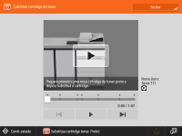 Pode programar a máquina para apresentar uma mensagem que indica que há pouco toner. Se a impressão tiver sido interrompida por falta de toner, é retomada automaticamente quando substituir a cartridge de toner. Se a cor e a densidade de impressão forem diferentes após a substituição da cartridge de toner, efetue o ajuste. |