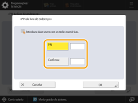 ![]() | Pode evitar a fuga de informações confidenciais ou pessoais do livro de endereços, programando um PIN ou evitando que determinados destinos sejam apresentados no livro de endereços. Também pode ocultar o livro de endereços. É necessário ter privilégios de administrador para configurar estas programações. |