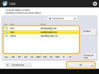 Selecione um endereço de correio eletrónico a partir do livro de endereços e carregue em <OK>.