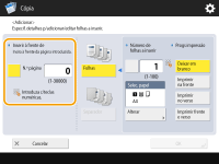 Especifique a página de inserção das folhas, programe o número de folhas e selecione se pretende imprimir nas folhas.