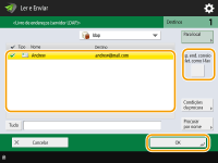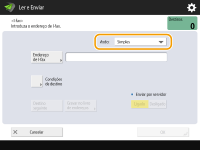 Carregue em <Endereço de I-fax>, introduza o destino e carregue em <OK>. O destino tem de ser especificado num formato como "adv01@exemplo.com". Para proceder ao envio para um dispositivo na mesma rede, introduza o destino num formato como "adv01@192.168.11.100 (nome do destinatário@endereço IP)".
