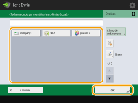 Ecrã das Funções Básicas de LeituraEspecificar destinos do livro de endereços