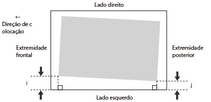 Se a imagem impressa estiver distorcida, pode conseguir corrigir a imagem desalinhada justificando as margens da marca "i" (ou seja, a distância da extremidade esquerda do papel até à área de impressão) e da marca "j".
