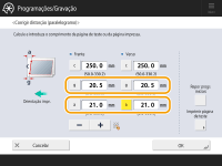 Se a posição da imagem variar bastante, a precisão da correção pode ser melhorada imprimindo várias páginas de teste e aplicando uma média do comprimento medido. |