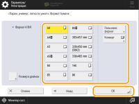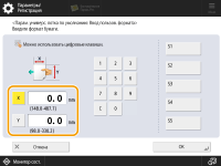 Нажмите кнопку <X> или <Y>, чтобы ввести значение длины каждой стороны с помощью цифровых клавиш. ![]() Если кнопкам <S1>–<S5> назначены часто используемые форматы бумаги, то требуемый формат бумаги можно задать одним нажатием соответствующей кнопки. Регистрация бумаги произвольного формата (Бумаги пользовательского формата) | |
