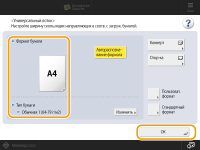 Проверьте формат и тип бумаги, а затем нажмите кнопку <OK>.