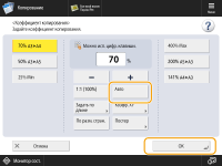Если задан параметр <Автомасшт. по XY>, выберите бумагу в меню <Выбор бумаги>. Если не выбрать формат бумаги, коэффициент копирования автоматически устанавливается в соответствии с форматом бумаги, загруженной в кассету для бумаги 1.