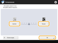 <Настройка черного тона>Отрегулируйте в направлении <Светлее>, чтобы изображение не стало слишком темным. Отрегулируйте в направлении <Темнее>, если текст и изображения слишком светлые. По завершении настройки нажмите <OK>.