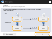 Нажмите <Высок.>, чтобы настроить уровень для обеспечения четкого копирования текста и линий, или нажмите <Низкий> для более плавного копирования полутонов на напечатанных изображениях и т. д.