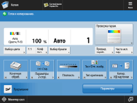 В этой области представлены сведения о состоянии параметра, такие как коэффициент масштабирования, формат бумаги, количество копий и т. д. Чтобы копирование было выполнено должным образом, обязательно проверяйте параметры в этом разделе экрана. Для изменения значений нажмите кнопку, расположенную под этой областью.