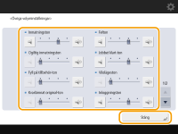<Vilolägeston> | Ljud som skapas när maskinen går in i viloläge eller när maskinen stängs av om du ställer in <Inst. för snabbstart för huvudströmbrytare> på <På>. (Beroende på situation, startar inte maskinen snabbt och signalen ljuder inte.) |