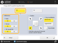 Ange utskriftsposition och originalriktning och tryck på <OK>.