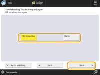 Om utmatningsdestination har satts till efterbehandlaren | Om utmatningsdestinationen har satts till avläggningsområdet för stackern |