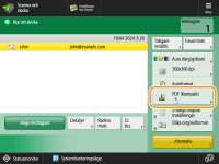 Ange mottagare på skärmbilden med grundläggande scanningsfunktioner.