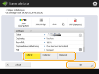 Tryck på <Scanna och skicka>. Skärmbilden <Hem>