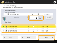 2 | Ange vilken fil som ska infogas och position för infogning och tryck på <Nästa>. ![]() Ange sidnumret där du vill infoga filen med sifferknapparna. |