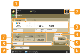 Visar de vanligaste använda knapparna. Inställningsstatusen visas på knapparna. Om du vill ändra inställningarna, tryck på önskad knapp.