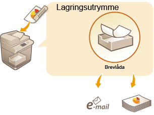 Genom att scanna och spara dokument i ett tillfälligt lagringsutrymme, en ”brevlåda”, kan du kan göra enkla ändringar för filer, t.ex. kombinera filer och ta bort sidor från filer. Eftersom brevlådan inte kräver några speciella inställningar, kan du snabbt och enkelt börja använda den. När filer redigerats kan du hantera dem efter behov, som t.ex. skriva ut eller skicka filer till en dator via e-post.