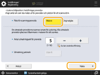 Om du måste justera bildens placering mer exakt efter justering med hjälp av provsida, välj <Använd inte scanner>→<Justera bildplacering> och gör nödvändiga justeringar för individuella inställningar. |