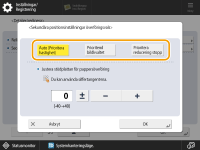 Om ett pappersstopp uppstår vid den sekundära överföringsvalsen när papperet har ställts in på en basvikt på 181 g/m2 eller mer, kan situationen förbättras genom att ange <Prioritera reducering stopp>.