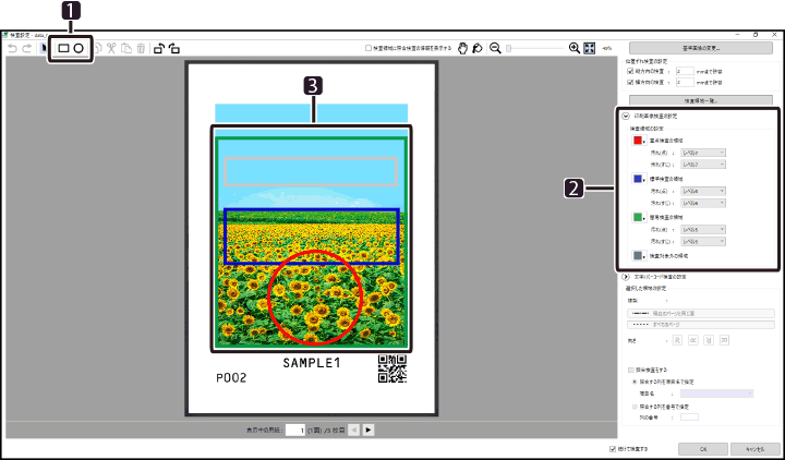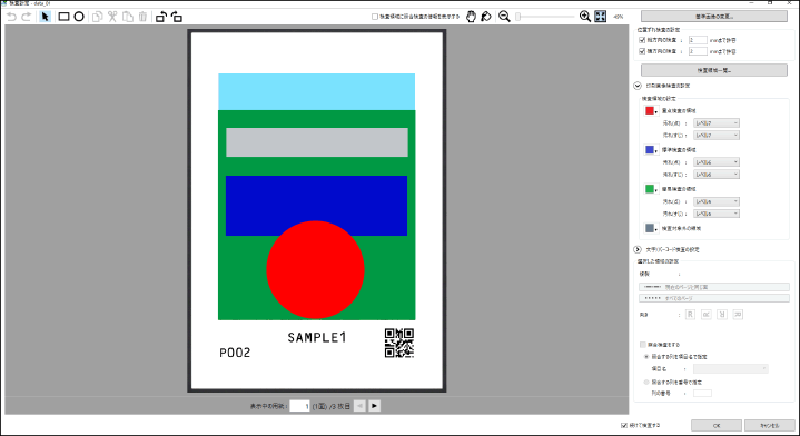 表示中のページや、手順6~7で設定した領域の適用範囲によらず、すべてのページの同じ種類の検査領域の検査レベルが、ここで設定したレベルになります。1つの検査ジョブの中に同じ種類の検査領域が複数ある場合に、それぞれに異なる検査レベルを設定することはできません。 |