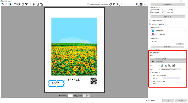 文字やバーコードの検査領域を選択し、それぞれの領域に対して[選択した領域の設定]を設定する