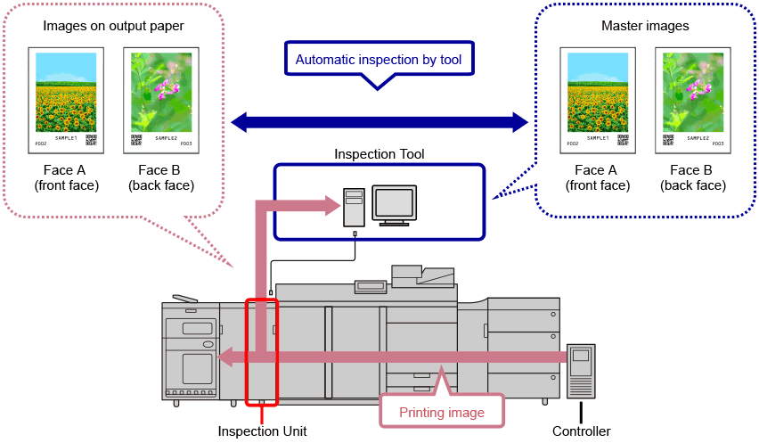 The Inspection Tool is software that is used to perform inspection of output paper. The Inspection Tool can perform the following tasks.