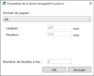 Spécifiez le format de papier de la tâche d'impression à utiliser pour l'enregistrement de la police sur l'écran [Paramètres de la tâche (enregistrer la police)].