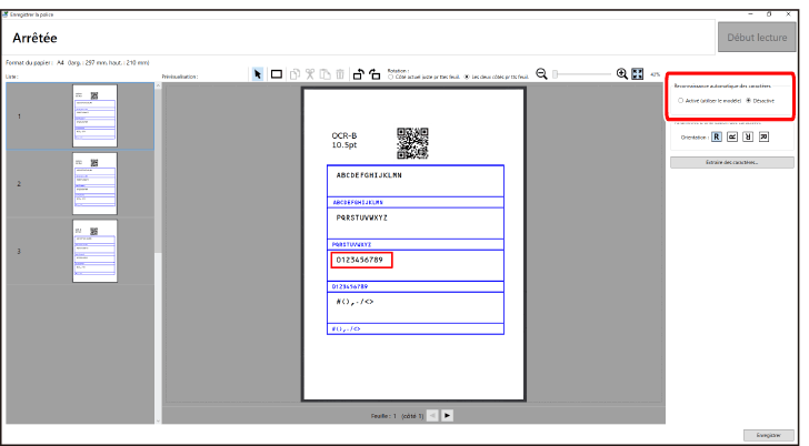 Si [Désactivé] est sélectionné dans [Reconnaissance automatique des caractères], sélectionnez