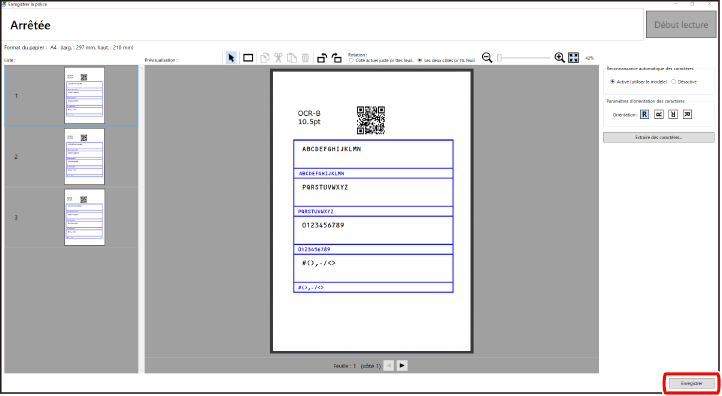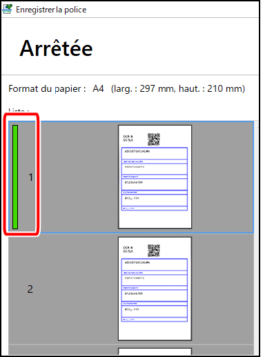 Pour enregistrer une autre police ultérieurement, accédez à la page souhaitée dans la zone [Liste] ou cliquez sur  pour sélectionner la feuille suivante, puis répétez les étapes 9 à 14. |