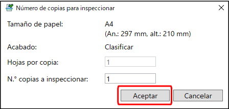 Introduzca el [N.° copias a inspeccionar] y haga clic en [Aceptar]