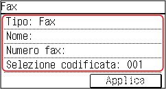 Se è selezionato [Selezione codificata], i numeri di selezione codificata non registrati vengono impostati automaticamente e viene visualizzata la schermata [Fax].