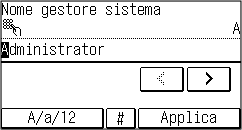 per cambiare il tipo di carattere immesso. Il tipo di carattere correntemente selezionato viene indicato da "A", "a" o "12" visualizzato sopra e a destra del campo di inserimento testo.