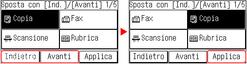 Selezionare [Indietro] o [Avanti] per spostare il pulsante e premere [Applica].