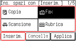 Per eliminare uno spazio vuoto inserito, selezionare lo spazio vuoto poi [Cancella] passare al passaggio 5.