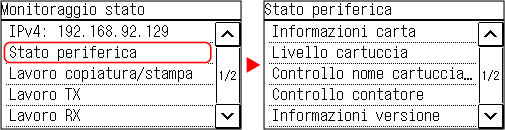 Quando si tocca il nome o il pulsante di una voce, è possibile selezionare la voce. Viene visualizzata la schermata selezionata oppure viene eseguita la funzione selezionata.