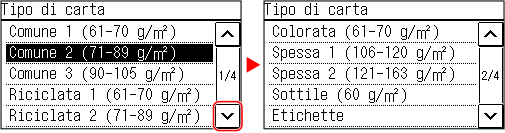 Se viene visualizzata la barra di scorrimento sullo schermo, significa che ci sono voci o informazioni non completamente visualizzate sullo schermo. Toccare