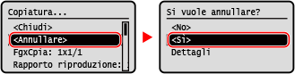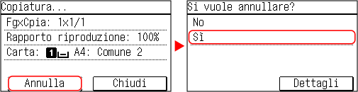 Seguire le istruzioni che appaiono a video per annullare un’operazione di copia.