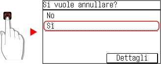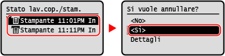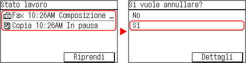 Se viene visualizzata la schermata dell'elenco lavori, selezionare il lavoro da annullare e premere [Sì].