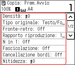Premere [Densità] sulla schermata di copia.