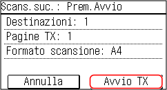 Al termine della scansione di tutti i documenti, premere [Avvio TX].