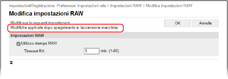 Verifica dell’utilizzo e dei registri con la IU remota [Impostazioni/Registrazione] Fare clic su questa voce per visualizzare la schermata [Impostazioni/Registrazione]. Se è stato effettuato l’accesso con la modalità Gestore sistema, è possibile modificare qualsiasi impostazione ed eseguire operazioni come il salvataggio e l’importazione di dati. Le voci impostabili nella schermata [Impostazioni/Registrazione] sono praticamente uguali a quelle del pannello operativo, ma alcune voci possono essere impostate solo con la IU remota oppure solo dal pannello operativo. Voci del menu ImpostazioniA seconda della voce, potrebbe essere necessario riavviare la macchina per applicare le impostazioni. Se è necessario riavviarla, viene visualizzato un messaggio nella parte superiore dello schermo. |