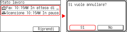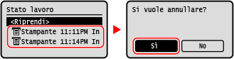 Se viene visualizzata la schermata dell'elenco lavori, selezionare il lavoro da annullare e premere [Sì].