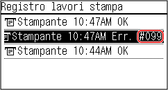 Se non è possibile eseguire la stampa, se non è possibile inviare ricevere un fax o se si verifica un altro errore, nel report o nel registro lavori viene visualizzato un codice errore (numero a tre cifre che inizia con "#").