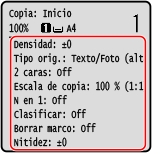 Además de los ajustes de copia básicos, el equipo también tiene opciones de copia a dos caras, ajuste de la calidad de la imagen y otros ajustes según el original y el uso que quiera darle. Use la pantalla de copia para configurar estos ajustes.