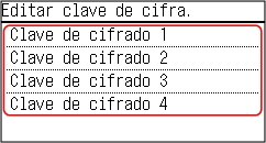4 | Seleccione una clave de cifrado que no esté registrada y pulse .![]() Aparece la pantalla de introducción de la clave de cifrado. |