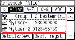Druk op [Details/Bew.], en selecteer de bestemming die u aan de groep wilt toevoegen of wilt verwijderen.