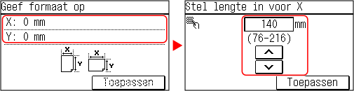U kunt formaten registreren als u vaak specifiek niet-standaard papierformaat gebruikt. U kunt het papier oproepen op het invoerscherm voor het formaat, wat u de moeite van het invoeren van het formaat bespaart.